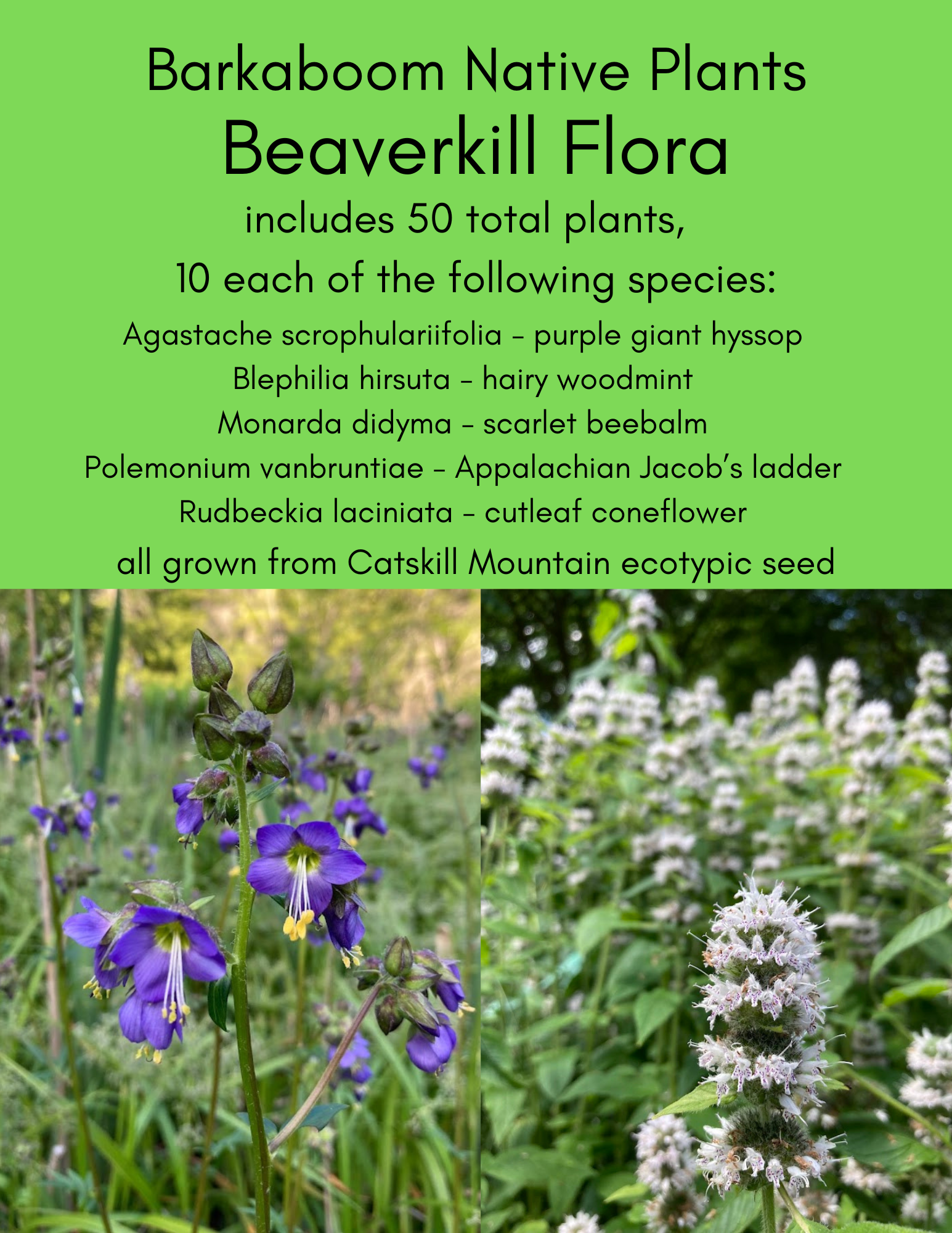 The valley of the Beaverkill is one of the most remote in the Catskill mountains and harbors many plants uncommon elsewhere in the region. This tray recreates the ecological community of those remote headwaters. It includes ten plants each of the following five species-
